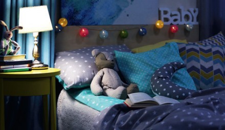 Podczas odświeżania pokoju dziecka nie zapomnijmy o oświetleniu sztucznym. Wraz z wiekiem zmienia się design i funkcjonalność lamp. Wiszące nad łóżkiem kinkiety w postaci wdzięcznych chmurek lub księżyców, z których sączy się delikatne, wyciszające światło z czasem ustępują miejsca bardziej funkcjonalnym oprawom dającym światło kierunkowe przydatne podczas wieczornej lektury. Konieczne jest dobre oświetlenie ogólne – lampa zamontowana na suficie musi dawać komfortowe światło doświetlające równomiernie wszystkie zakątki. Z czasem niezbędne będzie uzupełnienie wyposażenia o dobrą lampę biurową, najlepiej z giętym ramieniem, by umożliwiała łatwe ustawienie światła kierunkowego. Podczas liftingu pokoju rozważmy zakup girland świetlnych. Te kule mają duży potencjał dekoracyjny. Dają nie tylko ozdobne światło. Mogą być kolorowe, często zdobią je doklejone uszy czy noski budujące radosny charakter przestrzeni, Girlandy można wykorzystać na wiele sposobów – rozwiesić u wezgłowia łóżka, na regałach lub stworzyć z nich ramę okna.